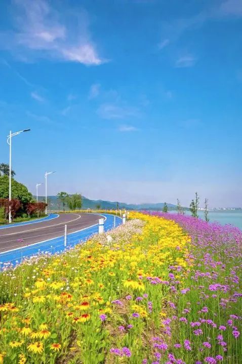 “太湖蓝”串联13个村庄,是周边居民跑步健身的首选场所,也是骑行爱好者的热门打卡地!整段线路的公共绿地面积达到48.2万平方米,一路野花芬芳相伴,是环太湖最精华的路段之一。