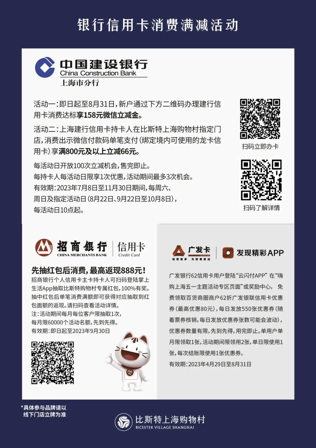 *注:银行满减活动可在购物村内指定品牌门店参与,具体请以收银台前展示的立牌为准。