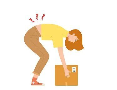 小贴士:搬重物时,最好先单膝跪地,尽可能将重物靠近身体,利用手臂举起重物至大腿中间,然后以保持背部笔直的方式站起,慢慢起身的同时,重物要尽量贴近身体。