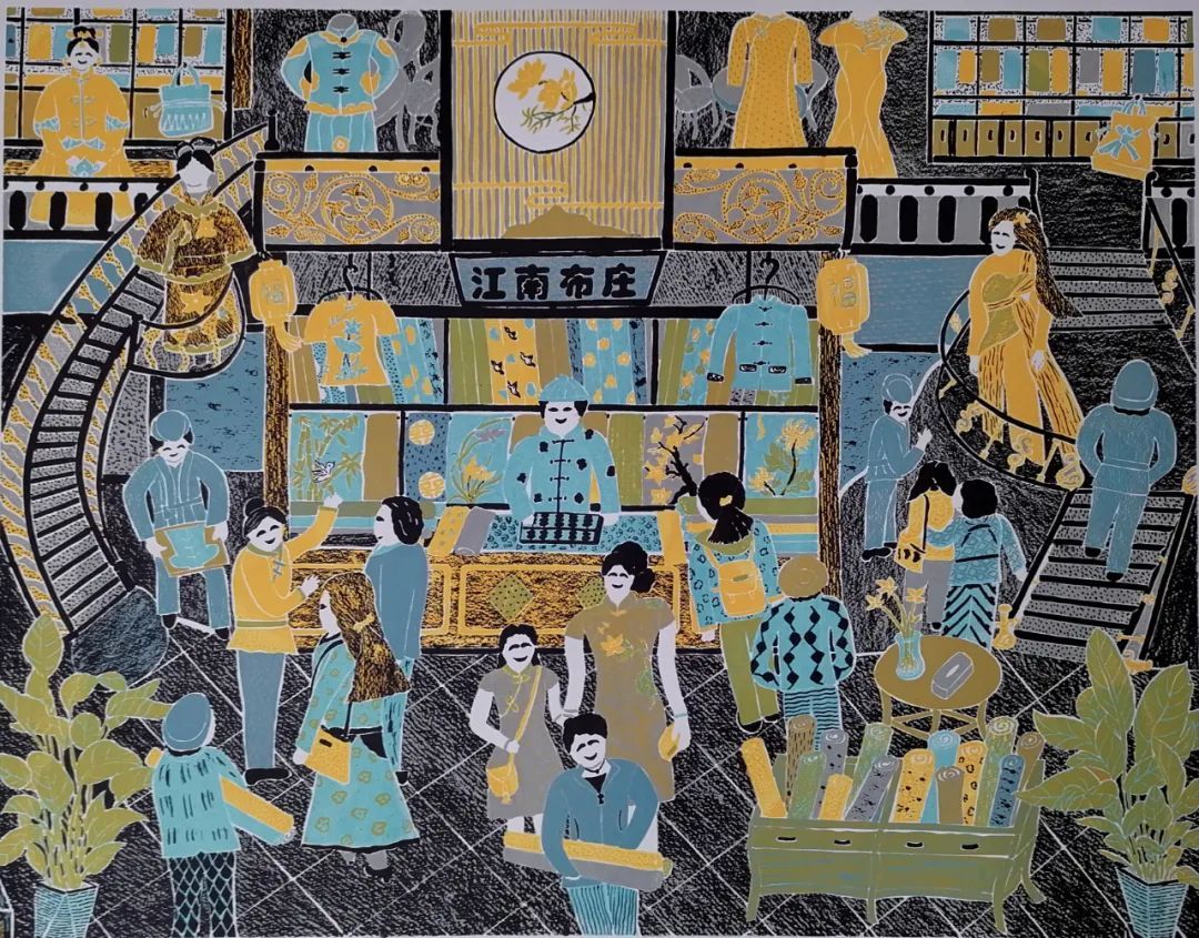7月13日,“百年风华·布艺传说”——车墩镇第二届渡口文化艺术展在车墩版画美术馆开展。本次展览分为丝网版画、海派剪纸及书法篆刻三种艺术体现方式,以米市渡口古今变迁、浦江文化、乡村文化等为主题,展现江南纺织文化。