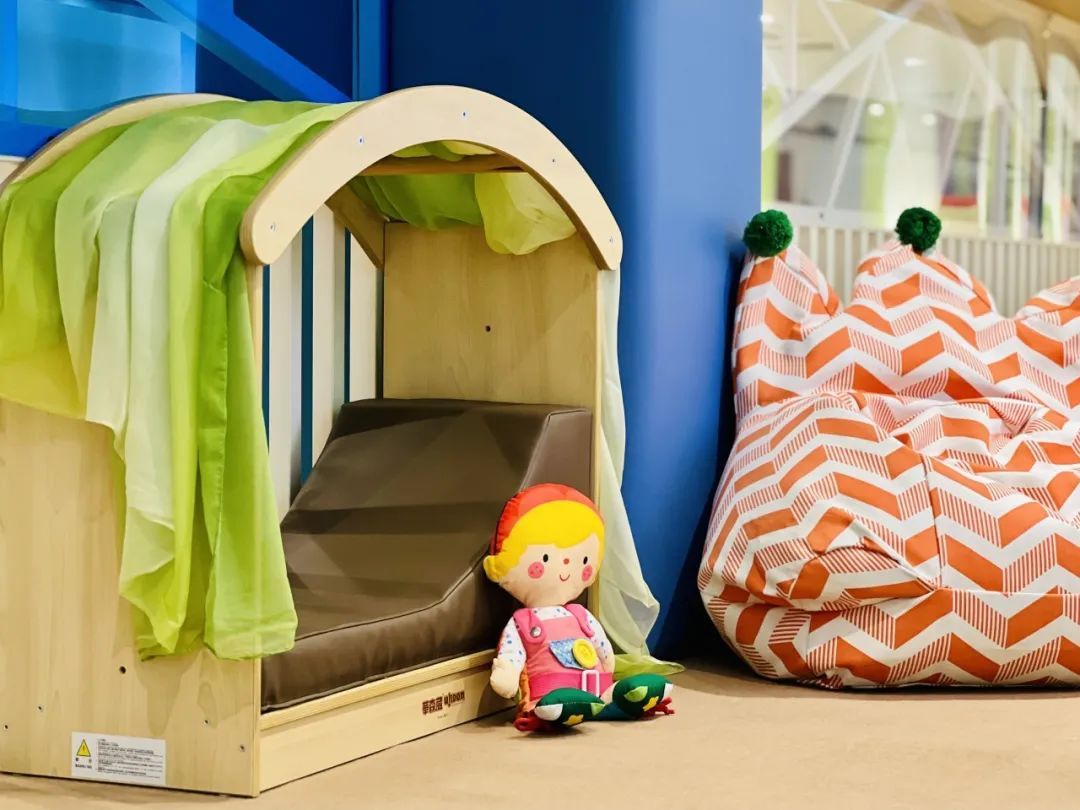 长寿路街道“宝宝屋”的“半开放”模式的环境创设符合早期儿童身心需求。矮柜和围栏的设置在“一米高度”,源于儿童观察的独特视角,解读他们的分离焦虑,照顾他们的内心独白,触及和家长的“视线温度”,在玩中有安全感的陪伴,同时,也缓解家长对托育服务存在的陌生与焦虑,直观了解孩子的状态和育婴员2小时的陪伴。