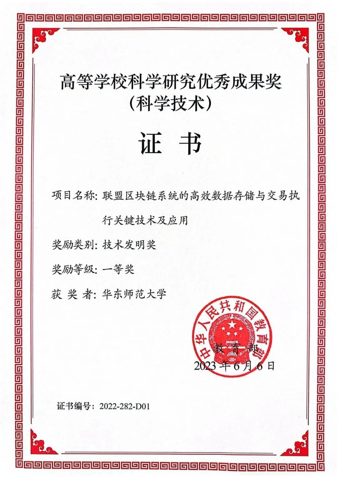 大会对2021、2022年度高等学校科学研究优秀成果奖(科学技术)获得者颁奖。华东师范大学数据科学与工程学院、区块链数据管理教育部工程研究中心周傲英教授领衔完成的“联盟区块链系统的高效数据存储与交易执行关键技术及应用”研究项目,荣获技术发明奖一等奖。