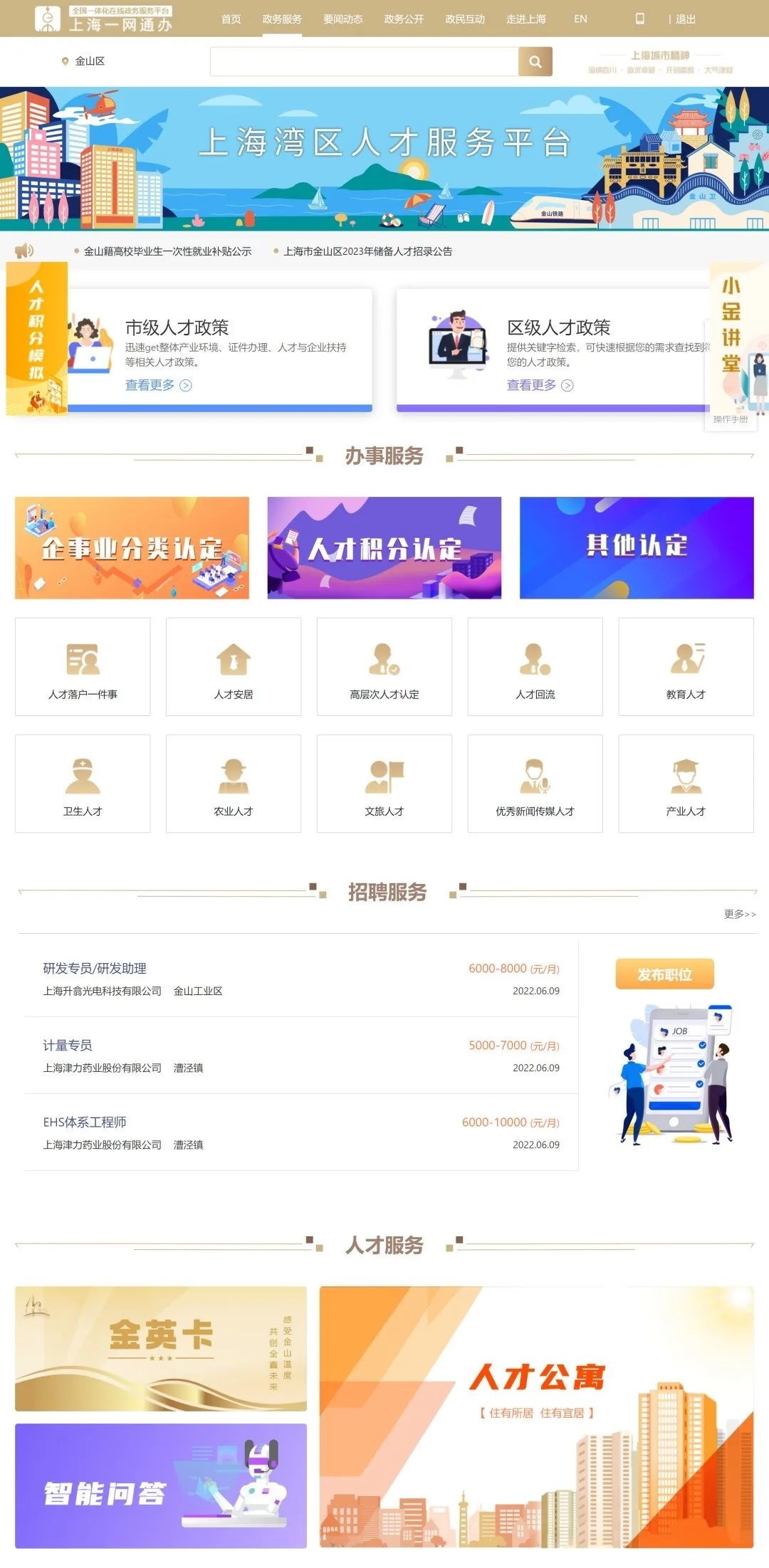 此外,金山区还积极推进数字化就业服务,打造上海湾区人才服务平台,擦亮人才服务“金”字招牌。