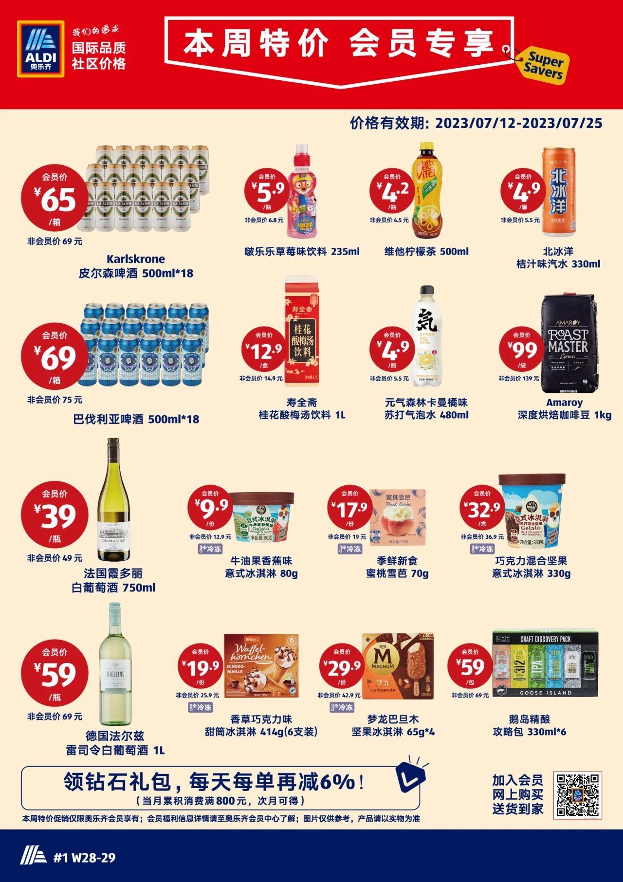 果大肉厚的时令阳山水蜜桃、超大分量1升装的进口冰淇淋、明星产品德式风味烤鸡......ALDI奥乐齐“超级特价月”活动来袭,百余款商品低至六折起,让消费者纵享清凉与实惠。本周末期间,奥乐齐长宁各大门店还有“快闪”优惠。