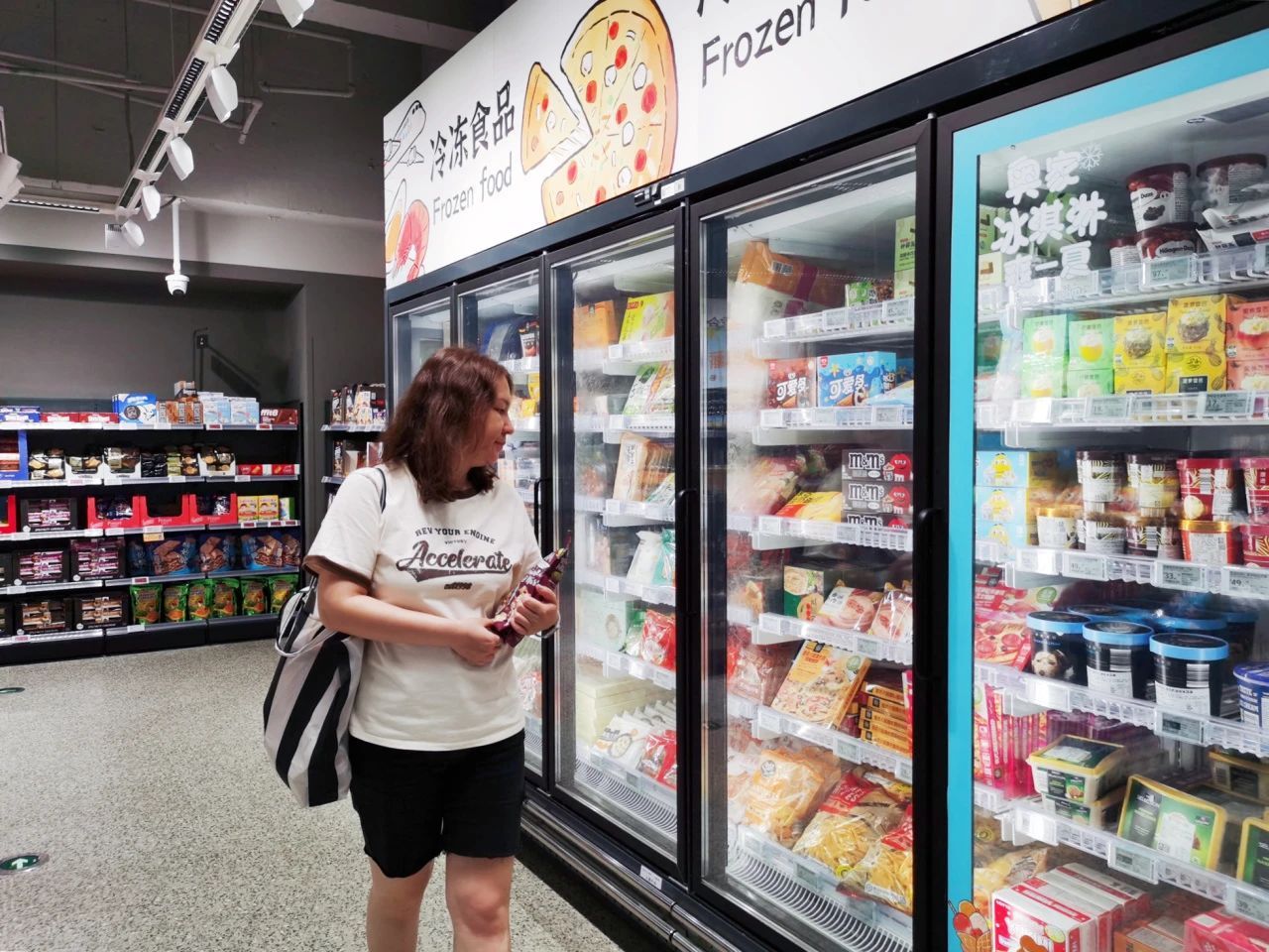 ALDI奥乐齐长宁龙之梦店内,货架上满满当当。ALDI奥乐齐相关负责人介绍,“超级特价月”活动将持续至7月底,线上商城及线下门店均参与活动,每周三更新一轮产品,优惠品类涵盖蔬果、生鲜、酒饮、冷饮等,相关商品均配有红色价签,市民购买时更加一目了然。