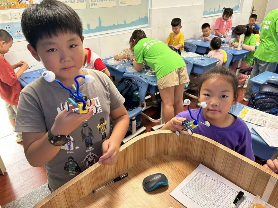 “手工课也非常有趣,和平时学校里做的简单模型不同,这次制作的机械爬虫需要电池和马达,它动起来那一刻,我觉得真的很神奇!”参加完另一门创新手工课的沈乔宇小朋友开心地说。