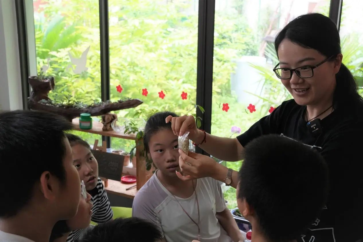 能自己弹出的大豆种子、长着翅膀的枫杨种子、黏在动物身上的苍耳种子……7月14日,在鸟语花香的新泾镇淞二常馨生境花园里,上海自然博物馆带来的首场馆藏特色科普课程——《植物种子的传播》正式开讲,让社区居民在家门口就能探索种子的秘密,感受大自然的奇妙。