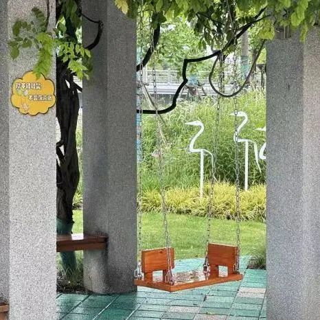 全民可享的休闲秋千位于中国陶瓷艺术家协会对面,爬藤廊架为市民带来遮阴避雨的功能体验,在空隙处增设的秋千根据成人和儿童的使用习惯,设定不同的悬挂高度,搭配靠背、侧面挡板、可自由锁扣的安全链锁带,为市民们营造一个安全、舒适的休闲活动场所。
