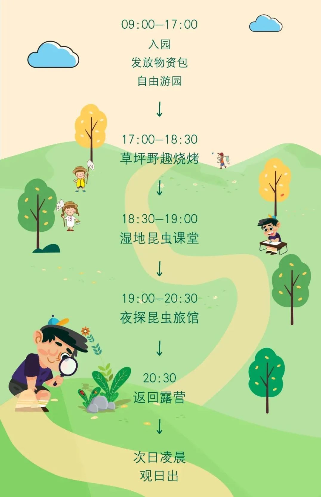 以上套餐价格包含:门票、交通(电瓶车)、餐饮(烧烤+早餐)、昆虫旅馆活动、星野露营、观日出、早餐套餐