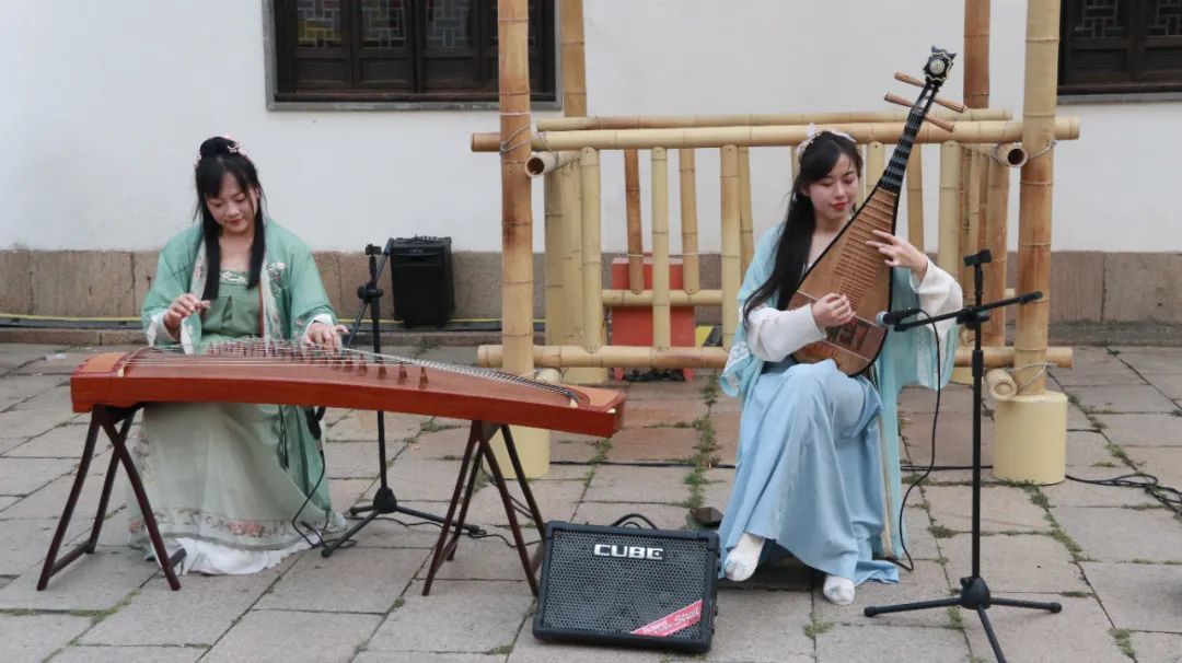 游客沈女士是第二次打卡游园会,这次她撑着油纸伞、穿上汉服、梳着仿古发鬓,可谓是有备而来。“袅袅琴音声声入耳,和表演者同在如诗如画的场景里,仿佛真的穿越到了古代。”沈女士说。