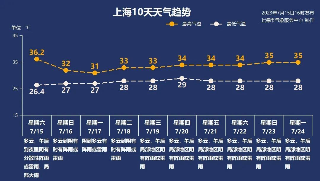 今天又是高温黄色预警高挂的一天,上午天空状况较好,升温速度加快;午后云系逐渐增多,跟昨日比,气温上升的脚步有点后劲不足,徐家汇站止步36.2℃,是今年的第12个高温日。