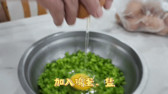 鸡蛋打入碗中,放入1勺盐调匀。