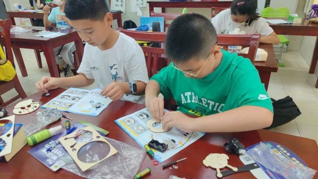 而除了科创主题外,暑托班的美育主题内容,也会教授孩子们制作非遗项目皮影,感受传统文化的魅力。此外,暑托班还将与附近的党群服务中心“梦幻联动”。蔡娱乐告诉记者,党群服务中心原本就有丰富的暑期活动,因此可以共享给暑托班的孩子们一同参与。同时,暑托班也会邀请党群服务中心的老师,以“画说红色故事”为主题,为大家讲述红色经典文化。