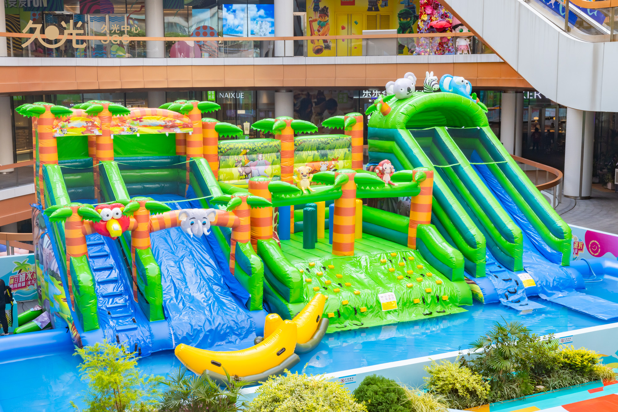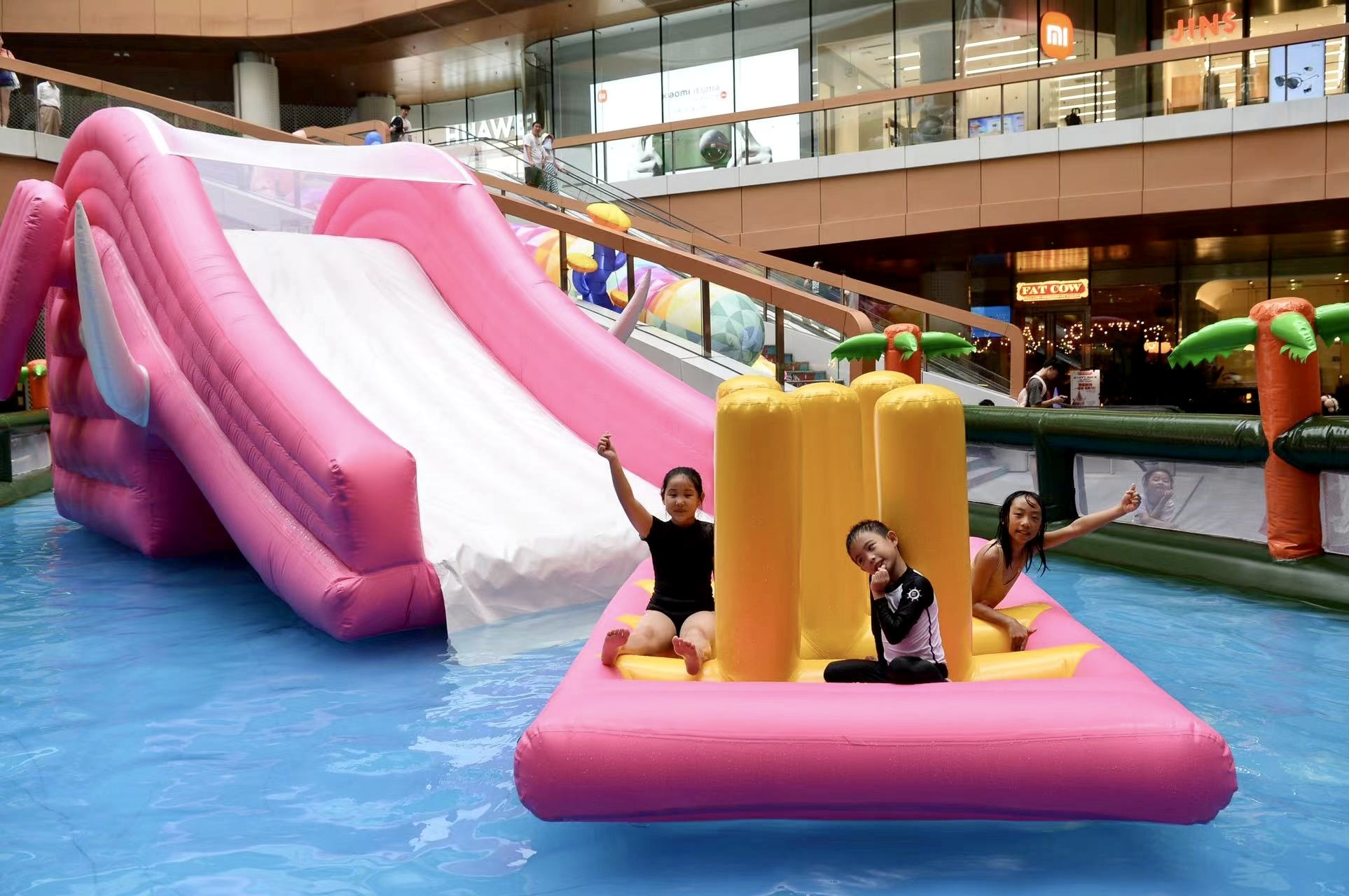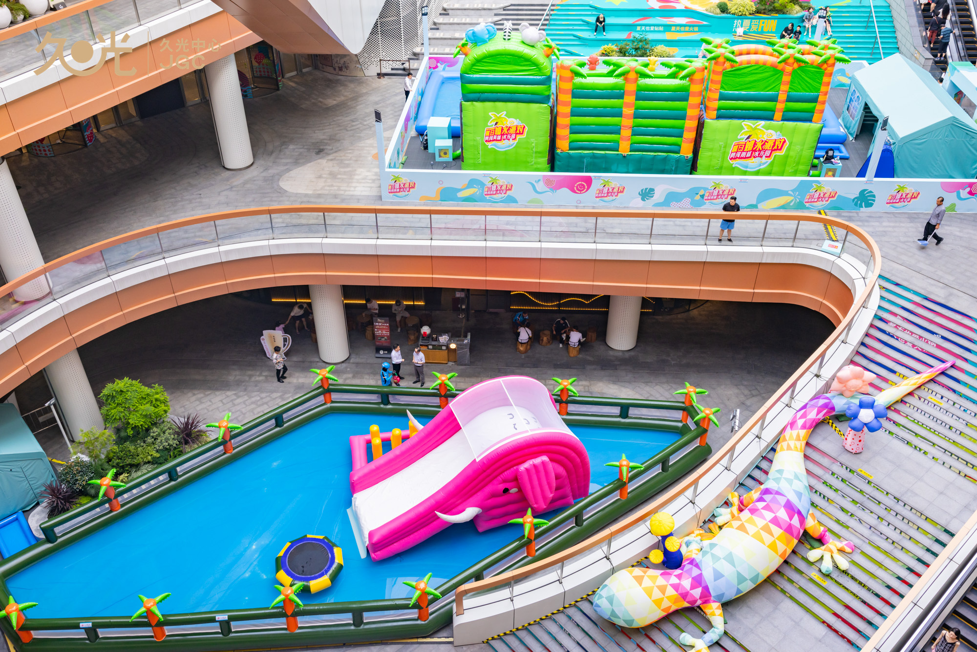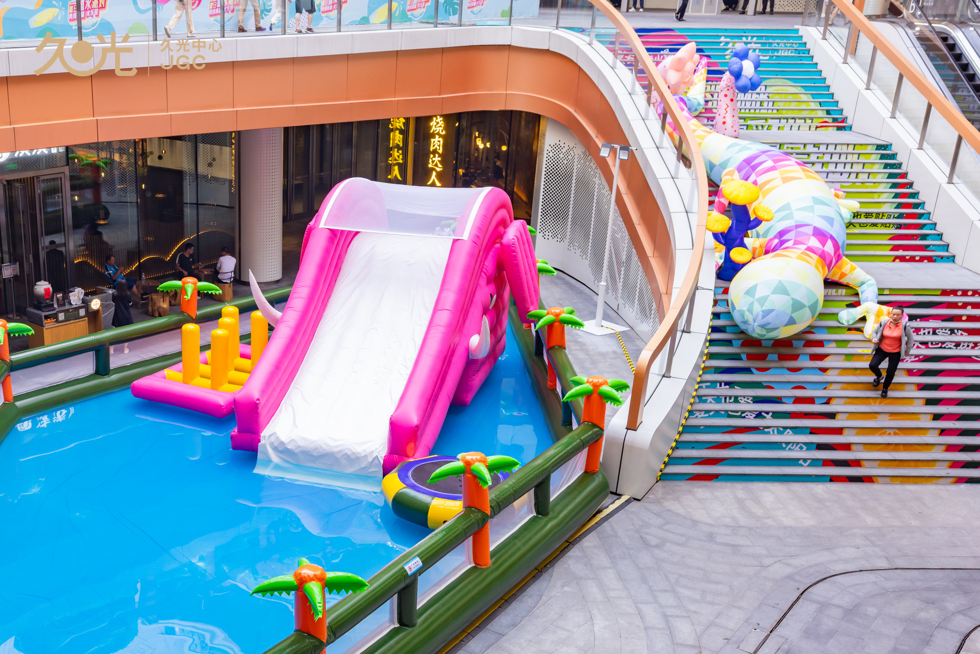 坐落于静安大宁板块的上海久光中心,拥有独具特色的户外三层中庭。此次,久光中心将B1-B2户外区域打造成为总面积近200平方米“跨层水乐园”。在这里,不仅有让孩子们开心的闯关水上游戏,还有让成年人多巴胺飙升的五彩雨林台阶......