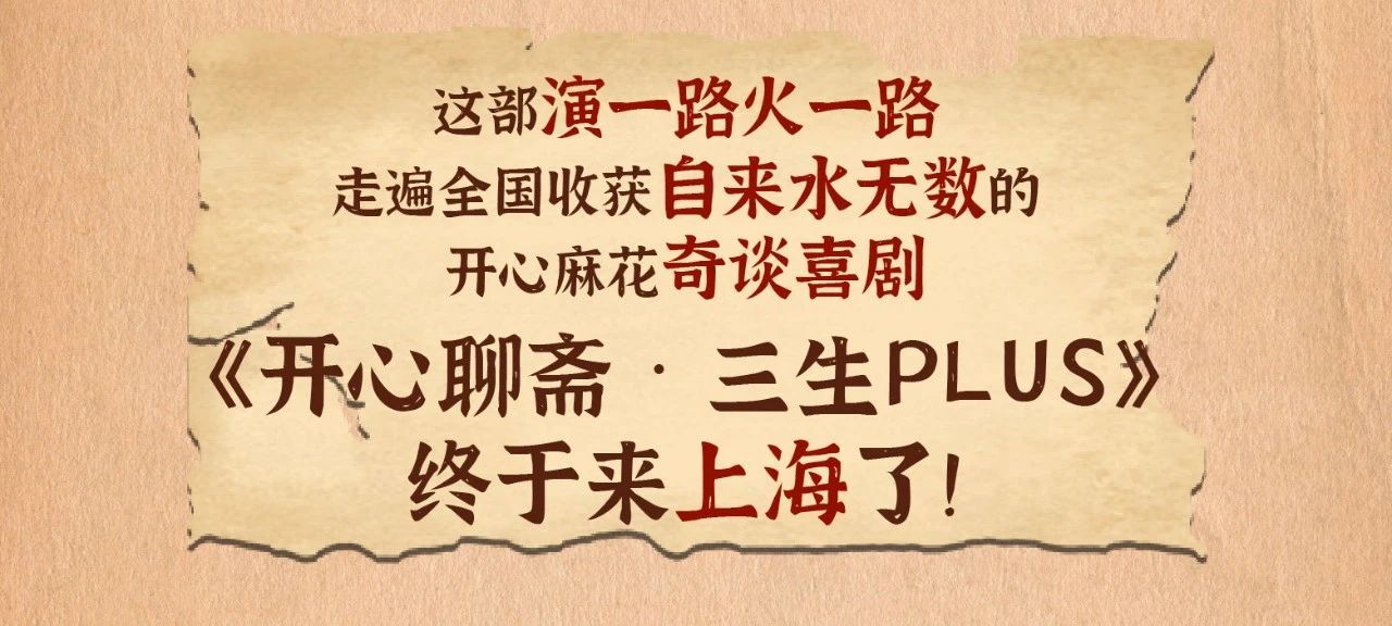 普陀区企业开心麻花创作的奇谈喜剧《开心聊斋·三生PLUS》,可谓是演一路火一路!这次终于来上海啦!