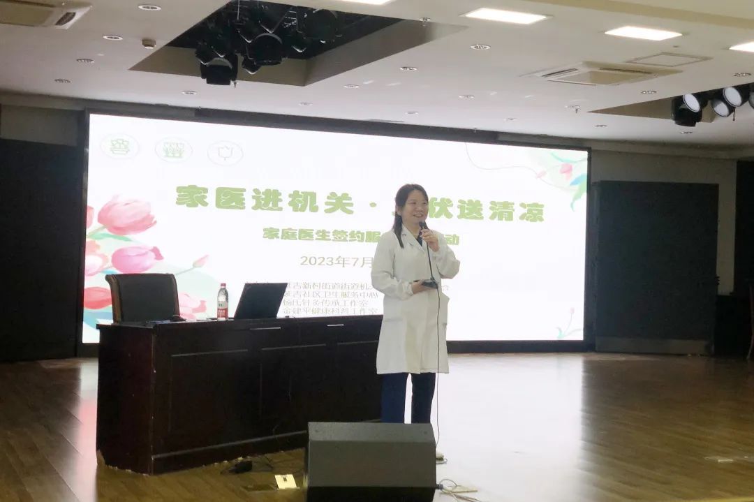 入伏以来,气温不断攀升。近日,延吉新村街道、社工工会和延吉社区卫生服务中心,在延吉新村街道办事处共同举行“家医进机关·三伏送清凉——家庭医生签约服务主题活动”。