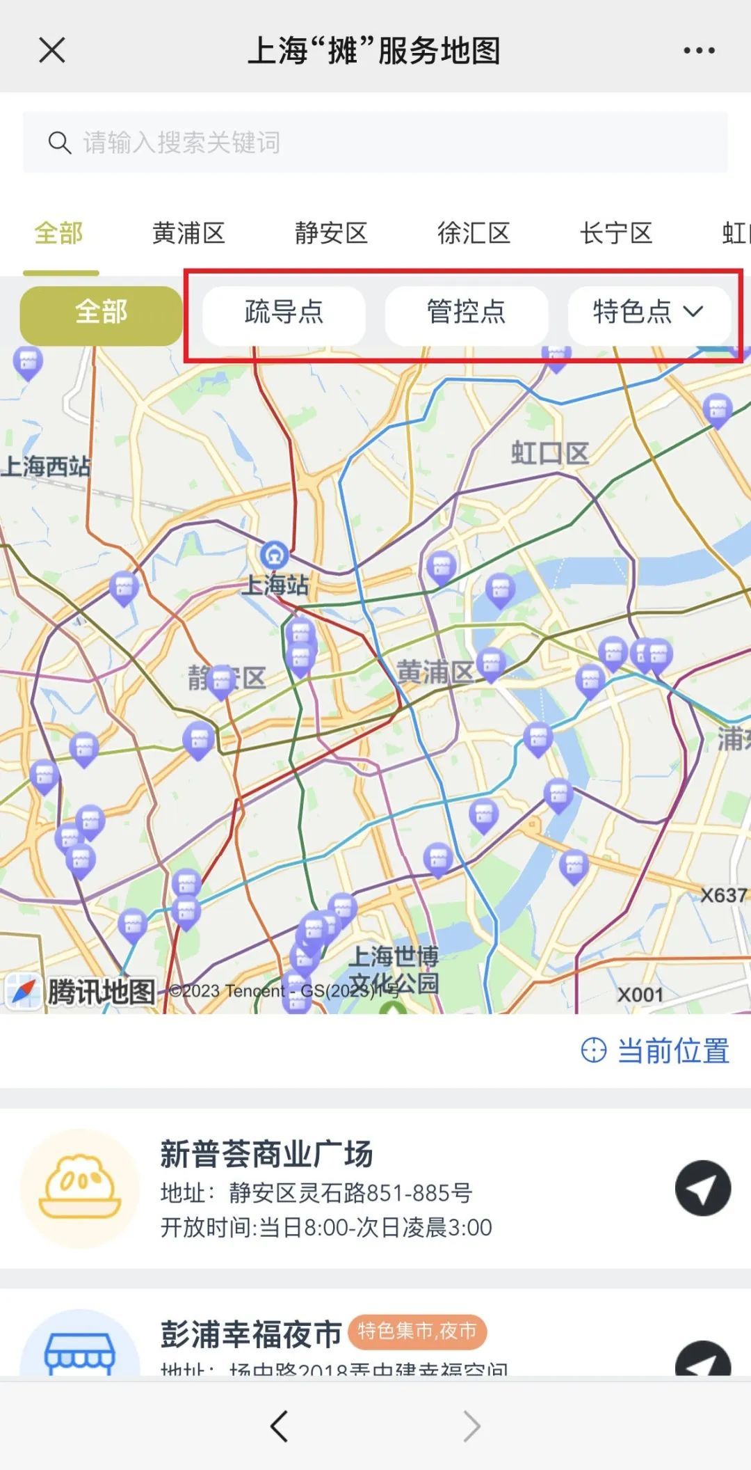 一张初步汇聚沪上各类特色设摊经营场所的服务地图便呈现在眼前。