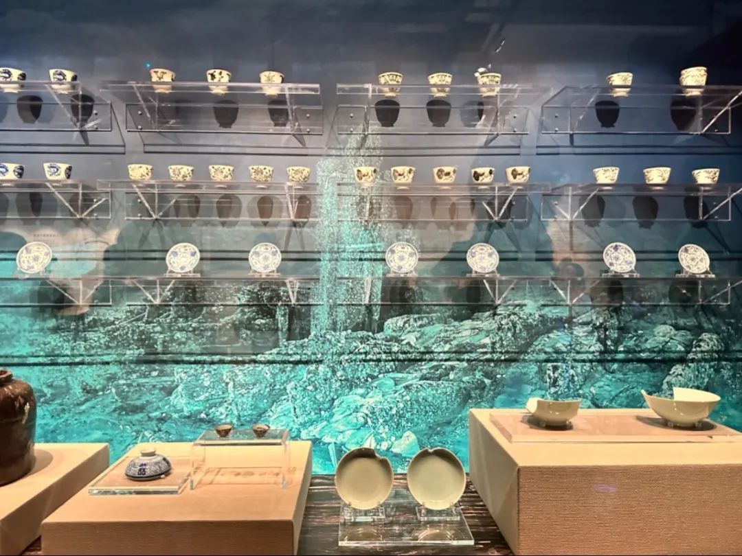 玻璃橱窗里展示了古船上的出水文物,它们就如散落海底的拼图碎片,展现了近代上海生机勃勃、文化多元的社会生活图景。