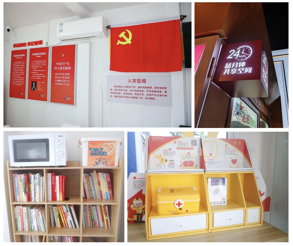 据悉,岗亭的改造计划已经筹备了半年多,为了有效盘活闲置资源,公园悦府居委筹备组党支部一直在积极探索更便民、更创新的处置方案,结合居民需求,这个“益分钟”共享空间应运而生。