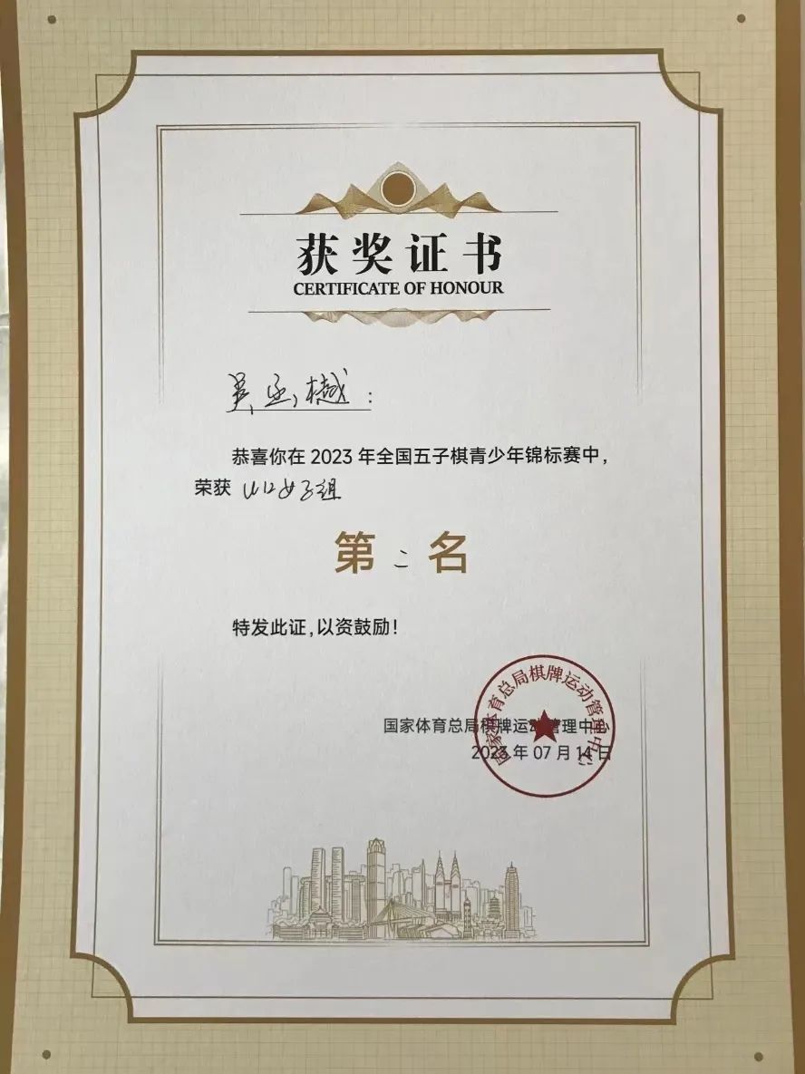 由国家体育总局棋牌运动管理中心、重庆市体育局、重庆两江新区管理委员会共同主办的2023年全国五子棋青少年锦标赛,近日在重庆两江新区开赛,来自全国16个省市和澳门特别行政区的27支代表队258名棋手齐聚一堂,比拼棋艺。宝山小棋手吴函樾是本次上海市代表队中的一员,虽然第一次参加全国锦标赛的个人赛,但她积极备战、发挥稳定,获得U12女子组第二名的好成绩。