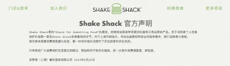 6月20日,Shake Shack通过官方渠道发表整改声明,表示已第一时间对相关问题作了定位排查和优化改进。