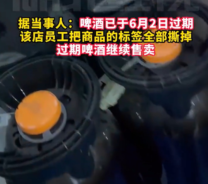 其余两份视频则分别显示,店员继续使用过期番茄酱,并将过期啤酒标签撕掉继续售卖。
