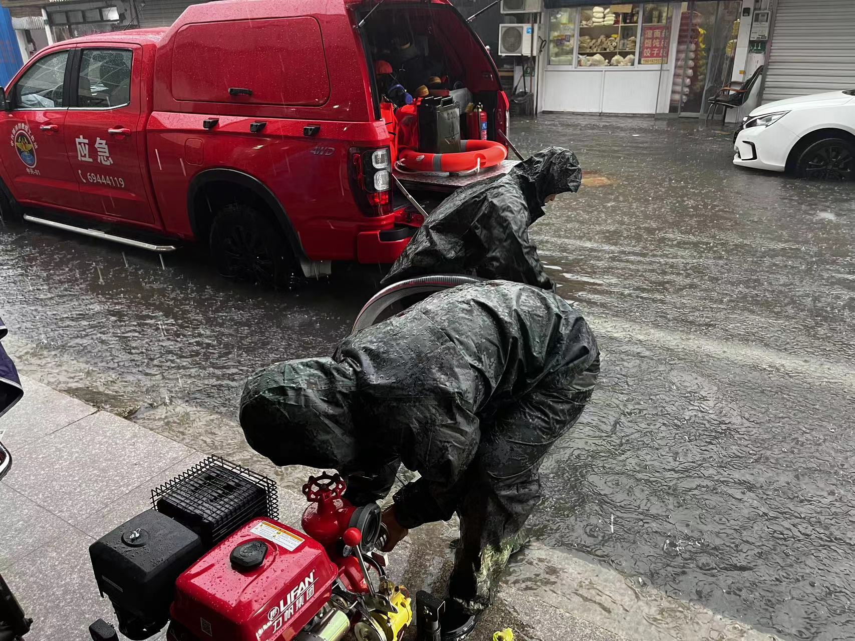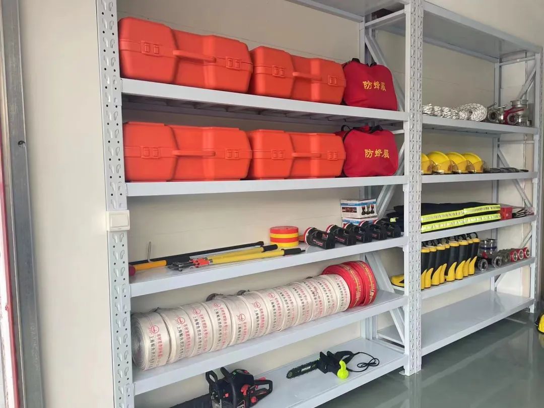走进工作站内可以看到,消防战斗服、水枪、水带、灭火毯、消防斧、强光灯等消防器材、设备设施摆放整齐,车库内还停着一辆小型皮卡消防车,可谓“麻雀虽小五脏俱全”。目前,工作站内有2组共8名队员,保证24小时随时待命,队员均为退役消防队员或退伍军人,并在入职前经过了专业培训。