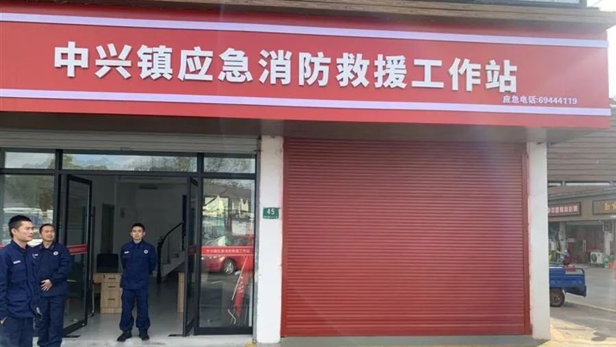 中兴镇誉福市场中心处,一个红色招牌颇为显眼——这里是去年9月成立的中兴镇应急消防救援工作站。