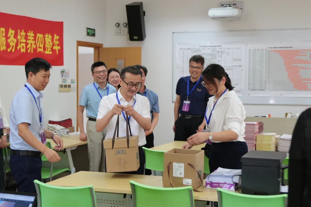 7月17日上午,上海财经大学校长刘元春、党委副书记朱鸣雄一行赴本科招生录取现场,对招生录取工作进行了慰问指导,并向工作人员送上了清凉慰问品。招生工作领导小组成员随行。我校本科各批次录取工作正在有条不紊地推进中,并将于近期步入录取高峰。