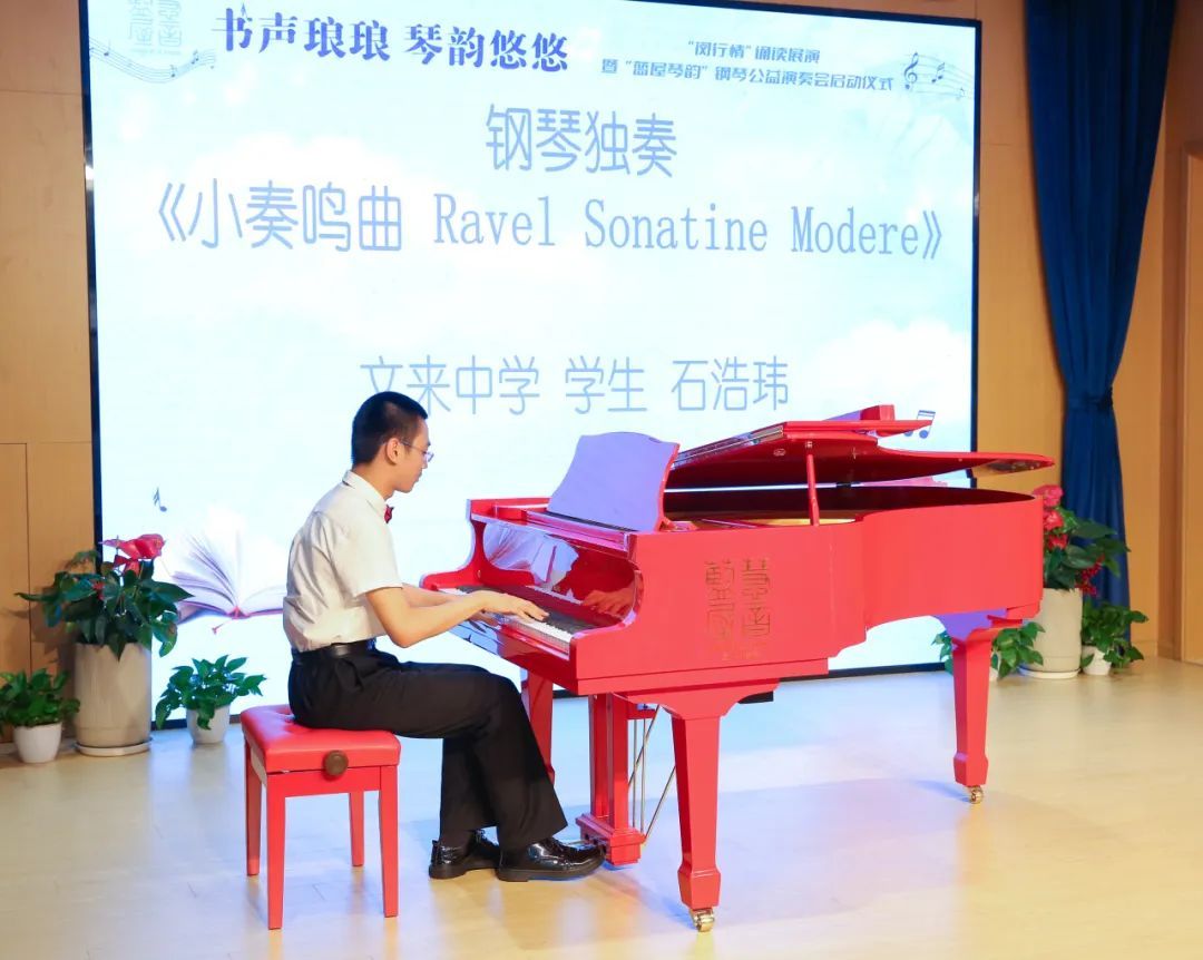不仅琴韵流淌,还有书声阵阵。《发现闵行之美》系列丛书诵读环节,主办方选取了书中的经典片段,由区内学生深情演绎。文来中学钟静怡朗诵了《蒲汇塘》,闵行中学附属实验中学陶阳、文绮中学罗睿升的《中华香樟一条街》讲述了江川路的故事,北外田园许金孝、李晨雨、李菲桐、冯雪妮则生动再现了《七宝有人家》的场景。