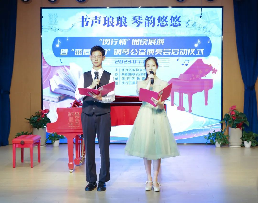 7月15日下午,闵行文化公园“蓝色城堡”内热情涌动、温情流淌,书声琅琅 琴韵悠悠——“闵行情”诵读展演暨“蓝屋琴韵”钢琴公益演奏会启动。