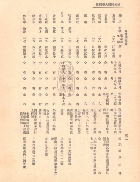 《国立同济大学概览(1934)》中“离校同学录”有马雄冠的名字