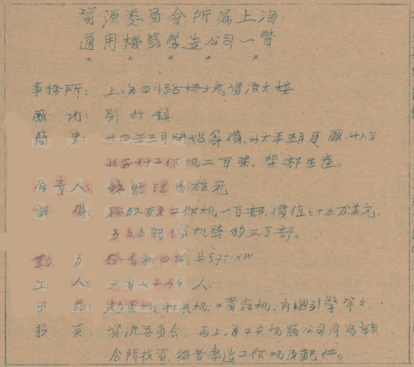 1947年5月,国民政府资源委员会任命原同济大学教务长蔡其恕教授为上海通用机器有限公司筹备处副主任