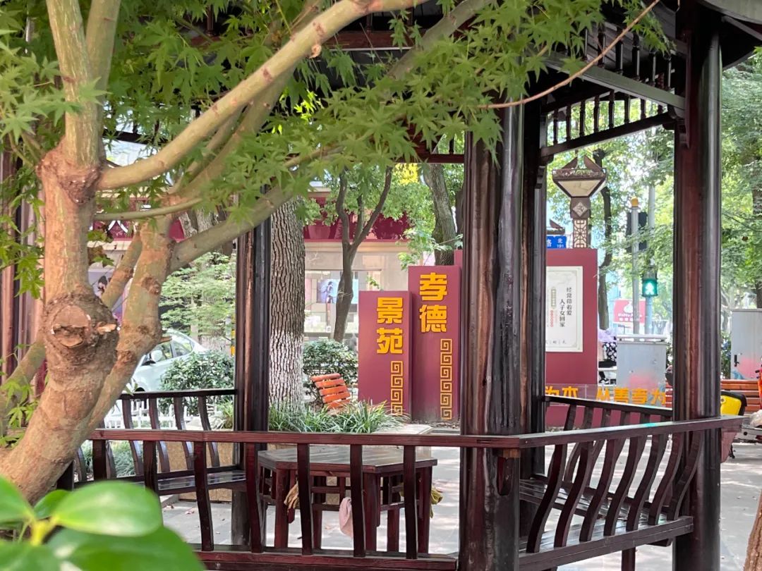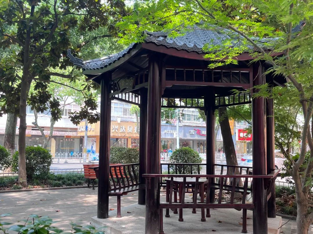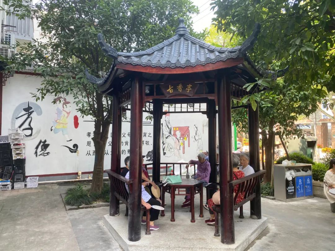 街心亭不仅是社区居民纳凉休憩、拉近邻里情的一个好去处,同时也是社区中一道靓丽的风景线,特别是位于万安街人民路口的“恬悠亭”和万安街罗星路口的“古香亭”,在朱泾人民心中更是有着特殊的意义。