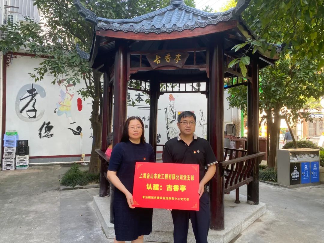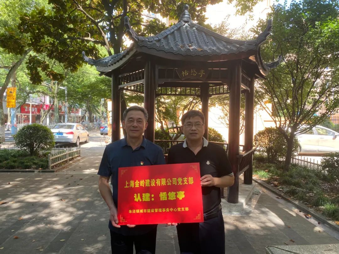 前不久,朱泾镇城市建设管理事务中心的工作人员在日常走访排摸中注意到了这两座年久失修的街心亭,随即对周围环境以及居民需求进行实地调研与排摸,充分发挥区域化党建的优势,在与共建单位上海金山市政工程有限公司党支部以及上海金岭建设有限公司党支部积极对接后,迅速制定了修建方案,两家共建单位给予大力支持,提出由上海金山市政工程有限公司党支部认建位于万安街罗星路口的“古香亭”,上海金岭建设有限公司党支部认建位于万安街人民路口的“恬悠亭”。