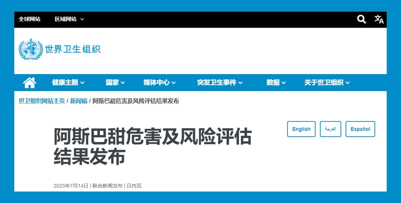 日前,国际癌症研究机构、世界卫生组织(世卫组织)和粮食及农业组织食品添加剂联合专家委员会(下称“联合专家委员会”)就非糖甜味剂阿斯巴甜对健康的影响发布评估报告。国际癌症研究机构援引对人类致癌性的“有限证据”,将阿斯巴甜归为可能对人类致癌之列,联合专家委员会重申其每日允许摄入量为每公斤体重40毫克。