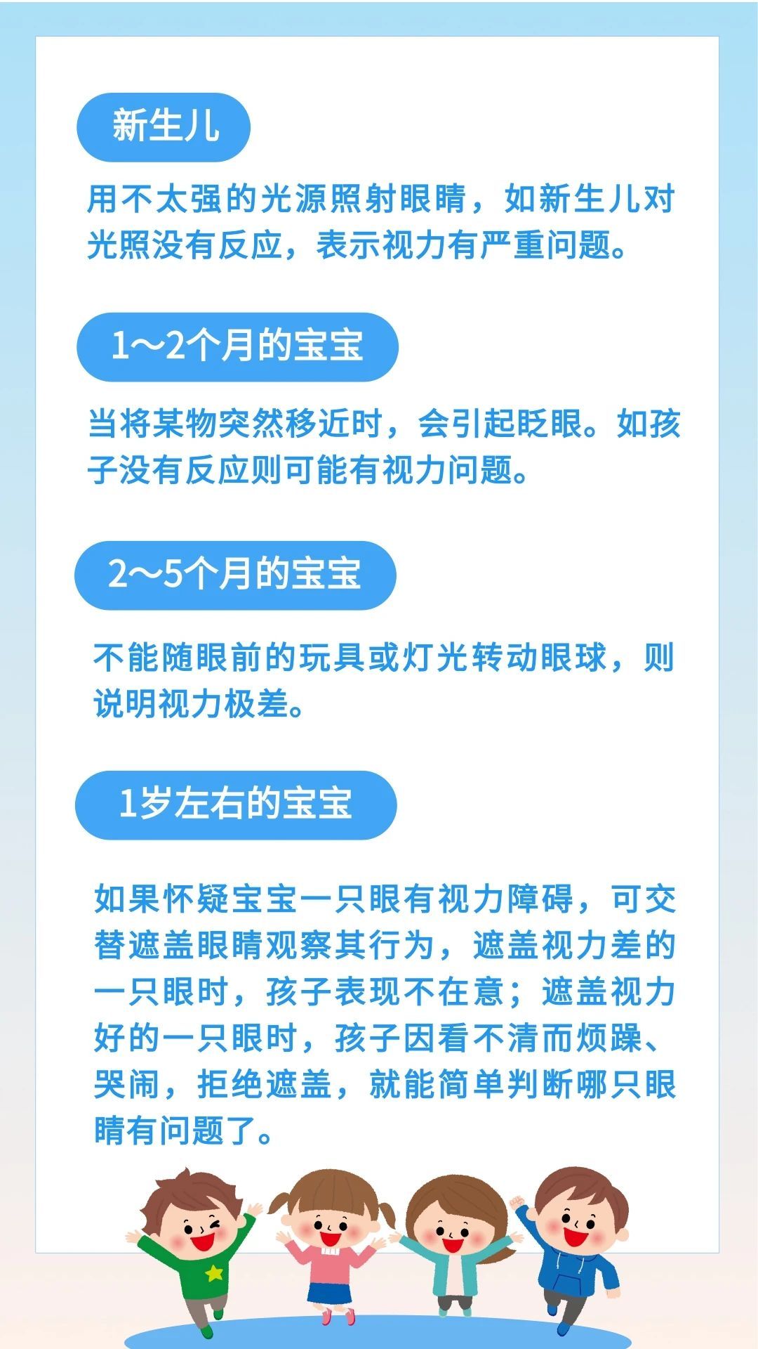 婴幼儿配合度差,想要完成视力检查是很困难的,这时家长的观察就变得尤为重要。