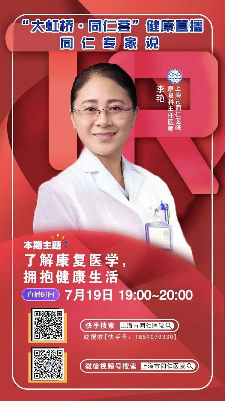 什么是康复医学?康复医学的优势和特色有哪些?今天19:00—20:00,“上海长宁”APP将与上海市同仁医院“大虹桥·同仁荟健康直播”共同直播:了解康复医学,拥抱健康生活。