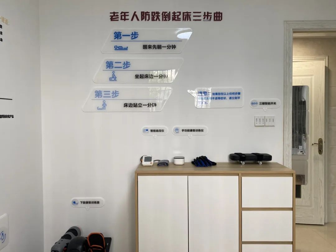 卧室内的手功能康复训练仪是一款智能辅具,帮助手部功能障碍的老年人进行手部被动训练,让康复更轻松;多功能医疗翻身床更是长期卧床老年人的福音,老年人能够实现自主多角度翻身、坐起、抬腿等功能,有效预防褥疮滋生,减轻了长期卧床的不便。在智能服务点内,像这样新奇的设备还有很多。