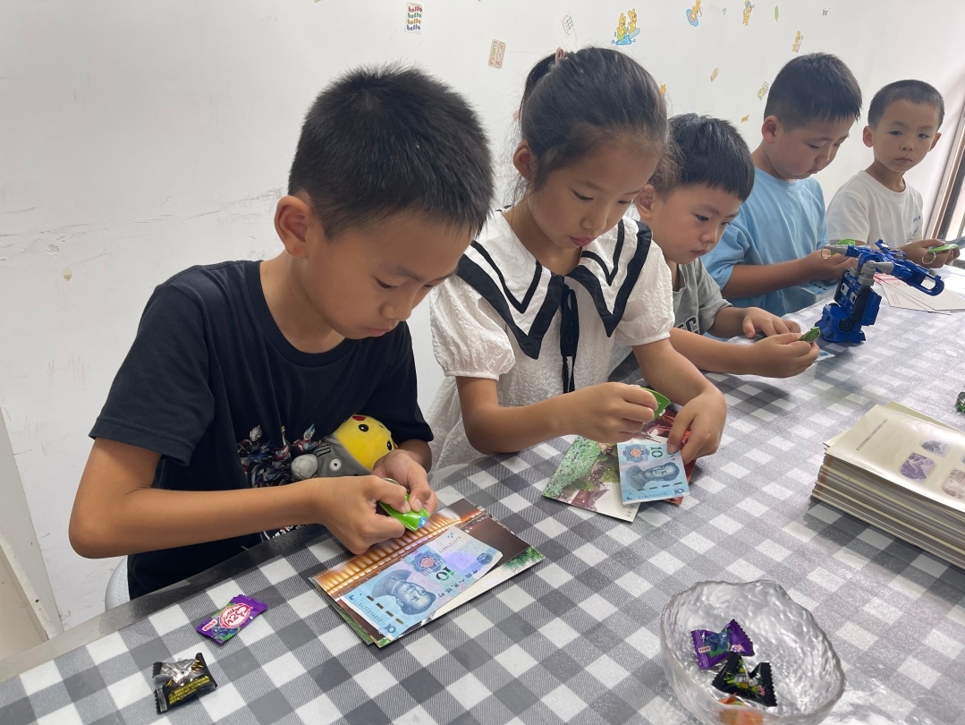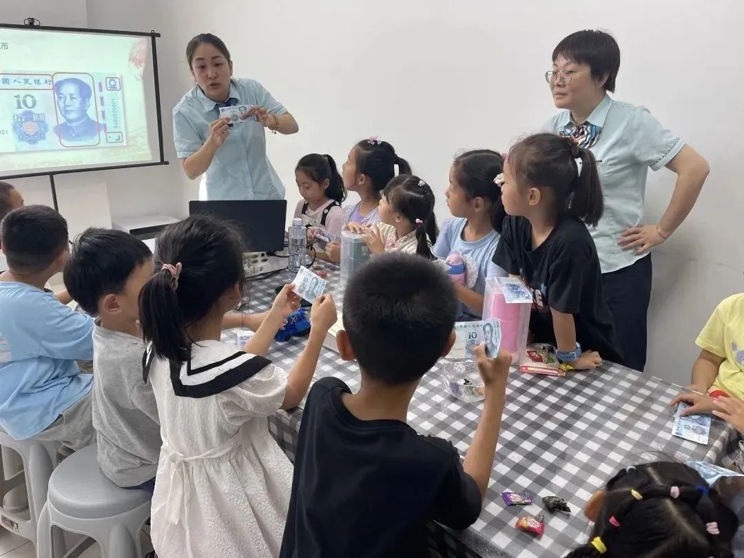 点钞也是一项必不可少的技能。工作人员为孩子们讲解了点钞小技巧,随后现场进行了点钞比赛。孩子们口中默念口诀,一个个专注点钞,操作得又快又准,让这场活动趣味横生。