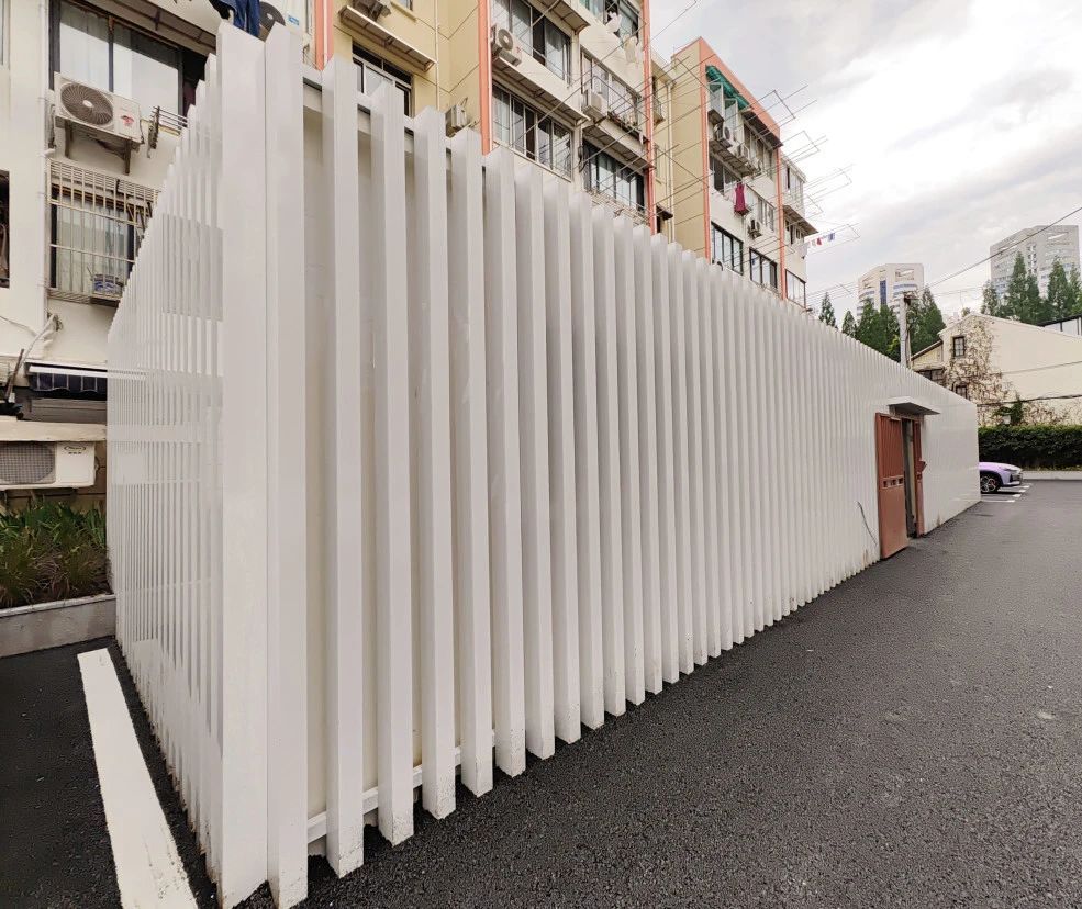 车棚整体外观由白色铝合金条进行封包,立体感十足,夜晚车棚点亮灯光,更是颇具现代艺术场馆的韵味,是小区改造的点睛之笔。