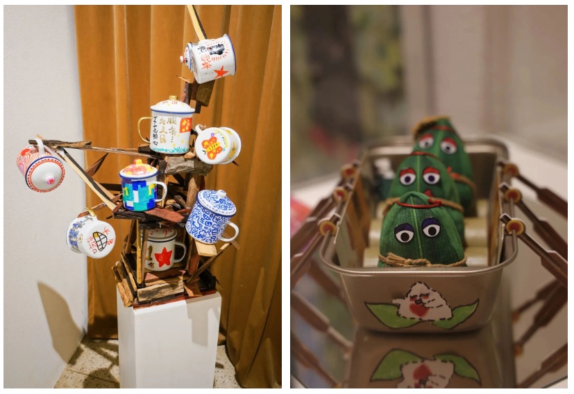 像人一般微笑的房子、五颜六色的植物王国、悬在空中的海浪、乘着龙舟出游的粽子……走进展厅,仿佛进入了一个色彩斑斓的童话世界,一件件充满了想象力和童趣的艺术作品,让观展者们忍不住拿起手机,拍照记录。