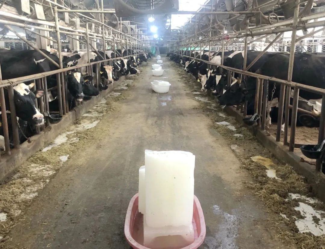 除此以外,牛舍中还摆放了冰块,用以物理降温。