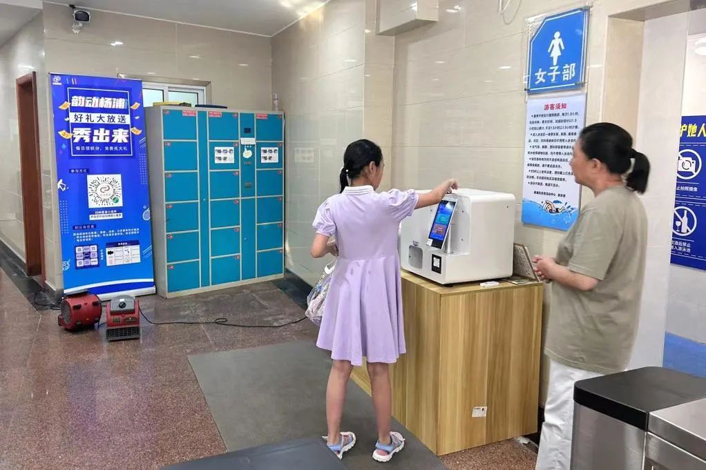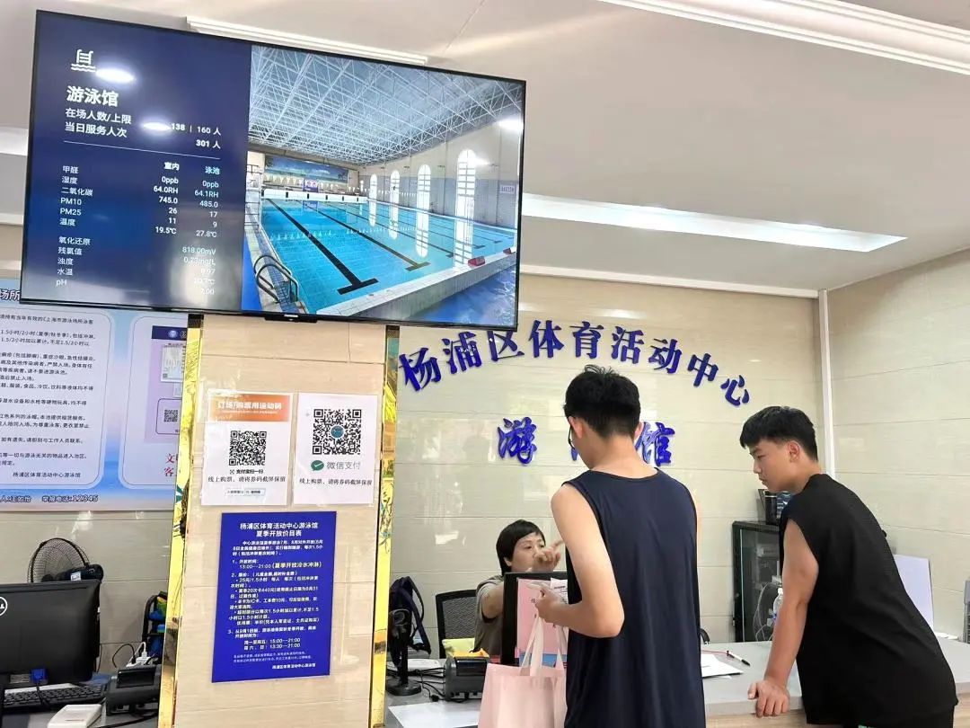 据了解,针对不会通过手机线上操作使用智能化设备的老年泳客,杨浦区体育活动中心游泳馆招募了勤工俭学的大学生和志愿者在门口进行引导和帮助,助力老年人适应智能化场馆。