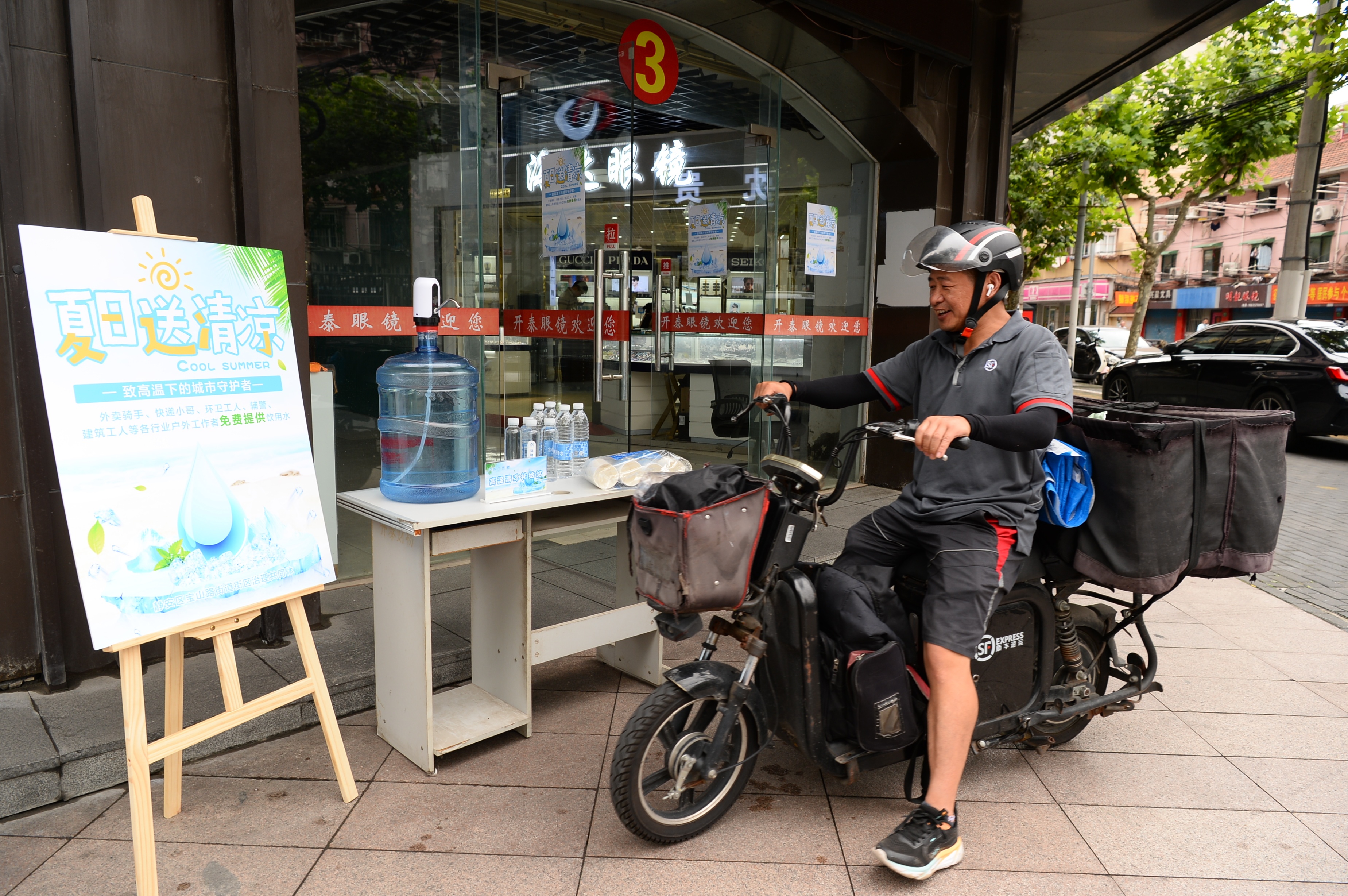 户外工作者们对商户的爱心之举纷纷表示感谢,顺丰快递小哥小张说,“天气越来越热,干我们这行来去匆匆,忙的时候路过取一瓶水,很方便,也感受到上海这座城市的温暖和关怀。”