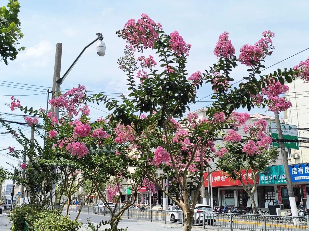 紫薇是上海重要的夏花植物,为丰富上海城市绿地中夏季观花植物种类,绿化指导站依托常态花卉布置城维项目、课题研究和技术指导等,大力开展紫薇推广应用,天鹅绒等优异品种在上海绿地中大放异彩。除此之外,紫薇的中国品种群也在各类道路、绿地中各展风姿。