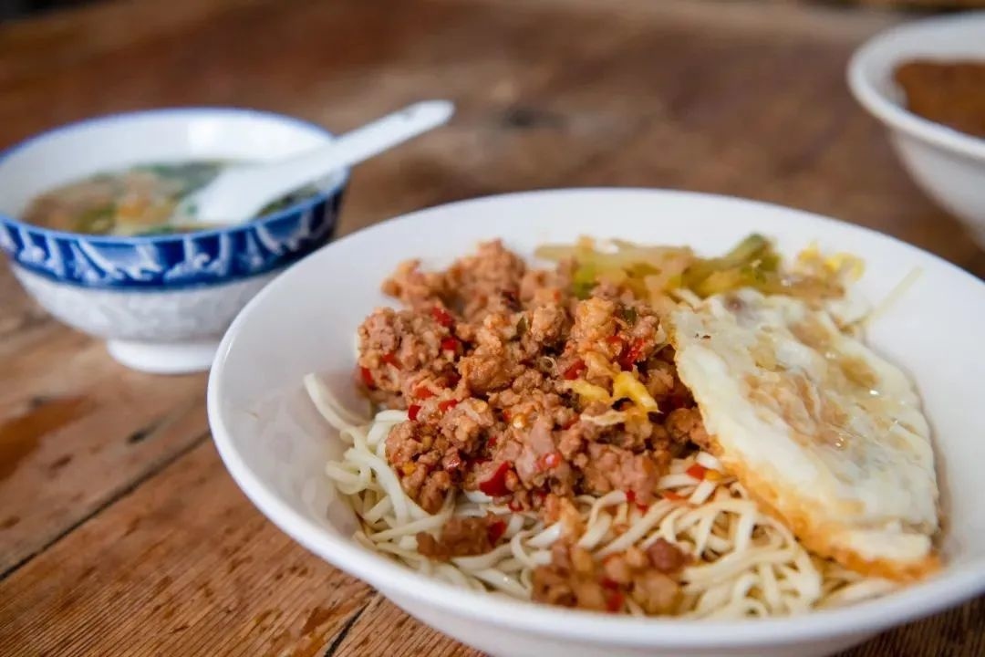 煮熟的面条捞出,拌上葱油,加入特制的酱汁和芝麻酱,更有大排、辣肉、扎肉、素鸡、鸡腿、咸菜肉丝等多种浇头可供选择,性价比高。口感爽口丰富,深受客人们喜爱。