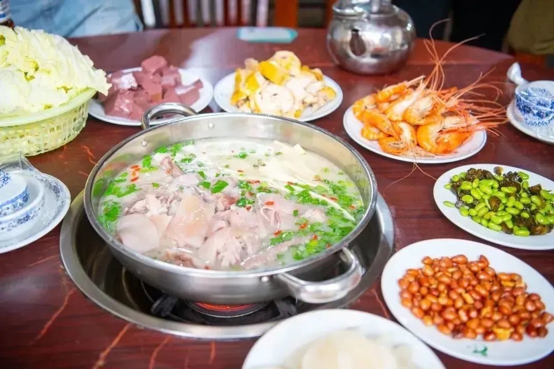 羊肉火锅是店内的特色菜品,羊汤火锅鲜美无膻味,汤纯底透,肉质酥嫩,绿色的蒜叶配上白色豆皮,看着清爽,吃着美味。