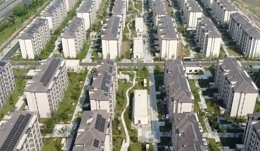 正在交房的和睦佳苑小区是上海最大的农民集中居住项目。根据设计,住宅楼顶全部安装了屋顶光伏,5548块光伏板产生的大量电能目前已经顺利并入崇明电网。