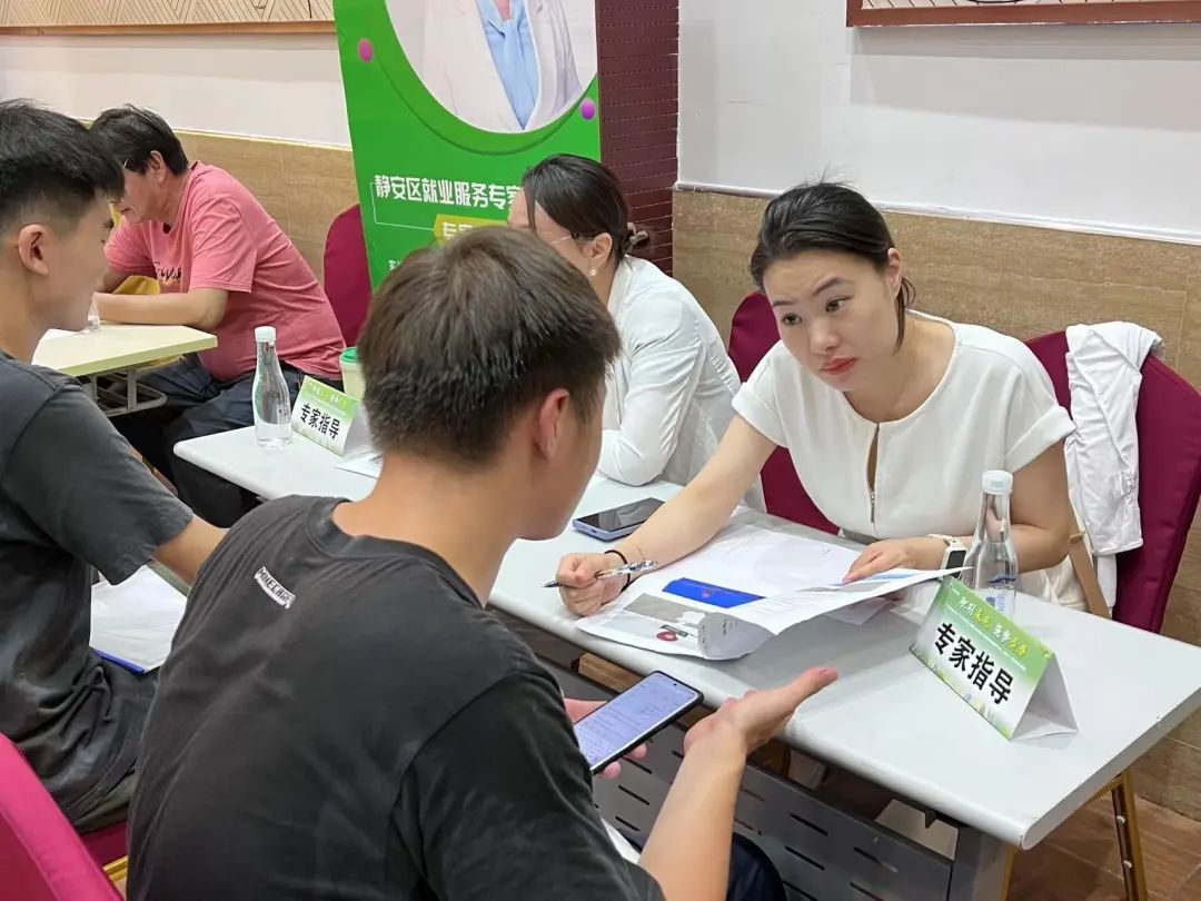 两位就业服务专家志愿者“坐镇”招聘会现场,为求职者提供一对一职业规划指导服务,帮助他们找出求职过程中的痛点,同时还有针对性地给出求职建议,指导他们解决求职的第一道关卡。